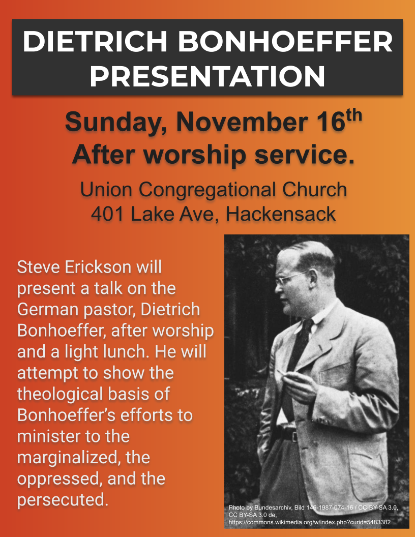 No broadcasting or duplication of any sermons allowed without permission from Union Congregational.